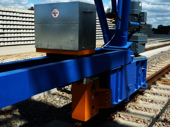 Windlastsicherungen setzen die Krananlage mittels einer, auf dem Kranschienenkopf angeordneten, Backe fest. Die Haltekräfte sind hierbei abhängig von den Radlasten der Krananlage (0 -200 kN / 0 -20,0t).